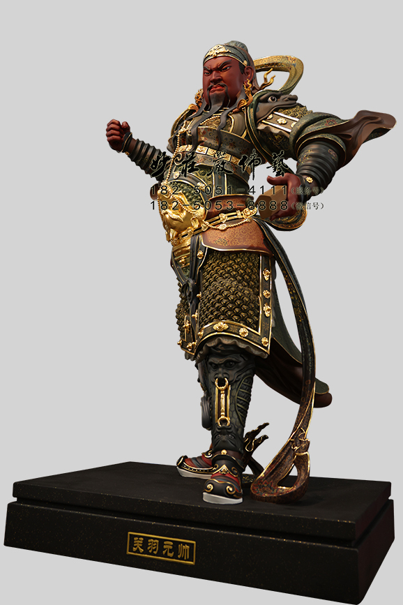 关公元帅是三国时期蜀汉名将关羽死后被神化而形成的道教护法神,尊号为“三界伏魔大帝神威远震天尊关圣帝君”,在道教中位居“护法四元帅”之一,与马灵耀、赵公明、温琼并列。关羽,字云长,河东郡解县(今山西运城)人,东汉末年名将,以忠义勇武著称。他生前为蜀汉前将军,死后追谥壮缪侯。起初影响有限,自隋唐起逐渐被神化,宋代开始受到官方推崇,封为“义勇武安王”“崇宁真君”等,正式进入道教神系。据《道法会元》记载,三十代天师张继先曾召请关羽斩蛟护民,因其忠义凛然,被封为“崇宁真君”,后成为雷部将帅与酆都大将,统御冥司,镇守南天门。民间传说中关羽死后英魂不散,在玉泉山显圣,经普净禅师点化顿悟,立誓护持佛法,后被天台宗智者大师授戒,尊为佛教“伽蓝菩萨”。